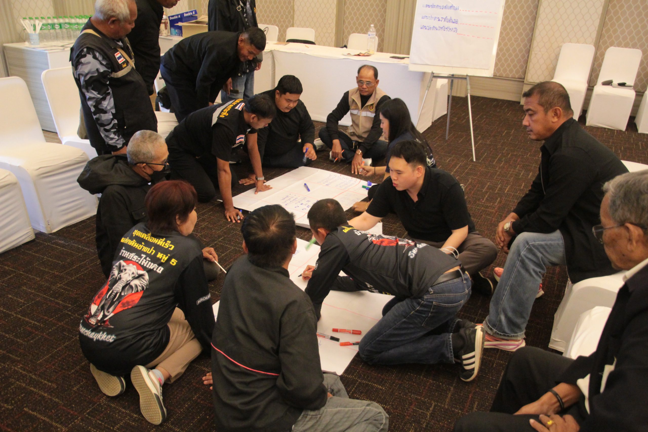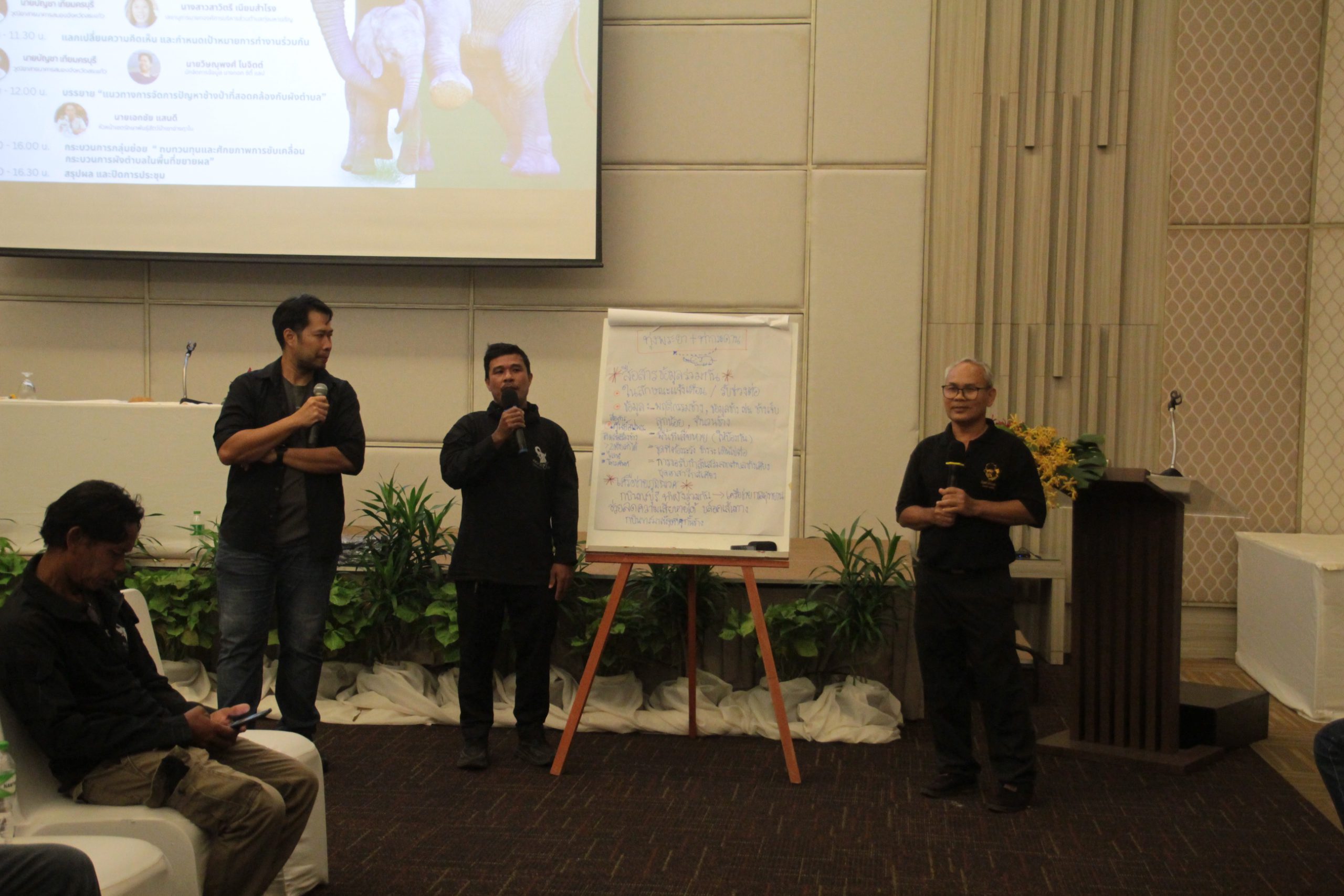 การประชุมแบ่งกลุ่มย่อย 5 กลุ่ม ได้แก่ (1) ตำบลสาริกา-เขาพระ จังหวัดนครนายก (2) ตำบลทุ่งพระยา-ท่ากระดาน จังหวัดฉะเชิงเทรา (3) ตำบลคู้ยายหมี-ลาดกระทิง จังหวัดฉะเชิงเทรา (4) ตำบลคลองตะเกรา-ท่าตะเกียบ-หนองไม้แก่น จังหวัดฉะเชิงเทรา (5) ตำบลเขาไม้แก้ว-วังท่าช้าง-ลาดตะเคียน จังหวัดปราจีนบุรี เพื่อทบทวนทุนและศักยภาพในการขับเคลื่อน “ผังตำบลเพื่อจัดการปัญหาช้างป่า” ในพื้นที่ของตน โดยพิจารณาวิธีการเก็บข้อมูล ทีมทำงาน เครือข่าย และทรัพยากรในพื้นที่ พร้อมกำหนดเป้าหมายการทำงานร่วมกัน อาทิ การพัฒนานโยบายร่วมการจัดทำข้อมูล การวางแผนเชิงพื้นที่ การสร้างเครือข่าย และการจัดสรรงบประมาณในระดับภูมินิเวศ
