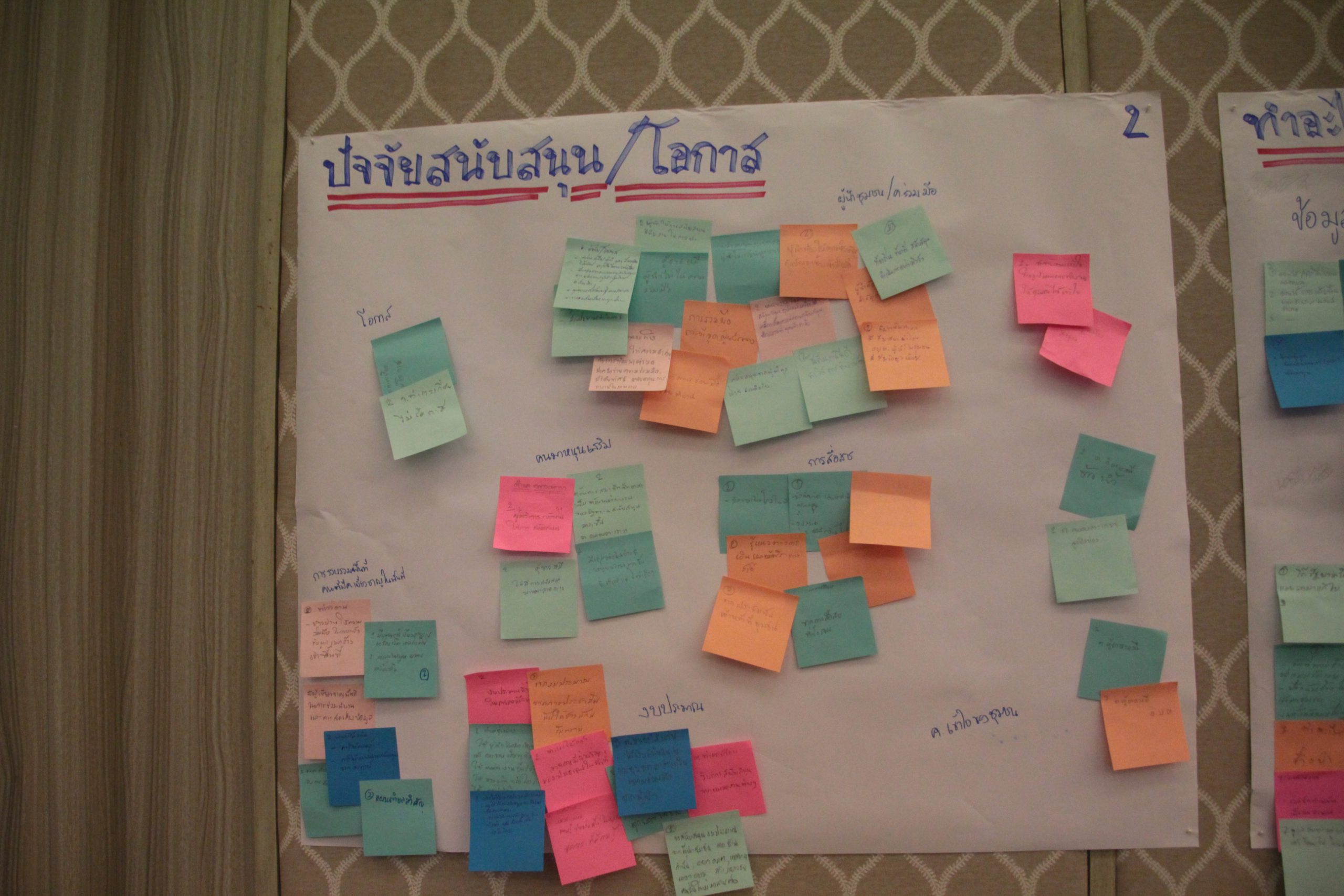 - ปัจจัยสนับสนุนและโอกาส พื้นที่มีความพร้อมในหลายด้าน อาทิ ผู้เชี่ยวชาญ ผู้นำชุมชนที่เข้มแข็งการสนับสนุนจากหน่วยงานภายนอก และความร่วมมือของชุมชน